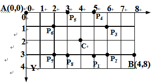 如下图,A 点有一个过河卒,需要走到目标 B 点。卒行走规则:可以 向下、或者向右。同时在棋盘上的某一点有一个对方的马(如上图的C 点),该马所在的点和所有跳跃一步可达的点称为马的控制点。例如右 图C点上的马可以控制9个点(图中的P1,P2,…,P8和C)。卒不能通过 对方马的控制点。棋盘用坐标表示,A 点坐标为(0,0)、B 点坐标为(n,m) (n,m为不超过 20 的整数),同样马的位置坐标是需要给出的(约定点:C≠点A,同时点C≠点B)。现在要求你计算出卒从A 点到达 B 点的路径的条数。