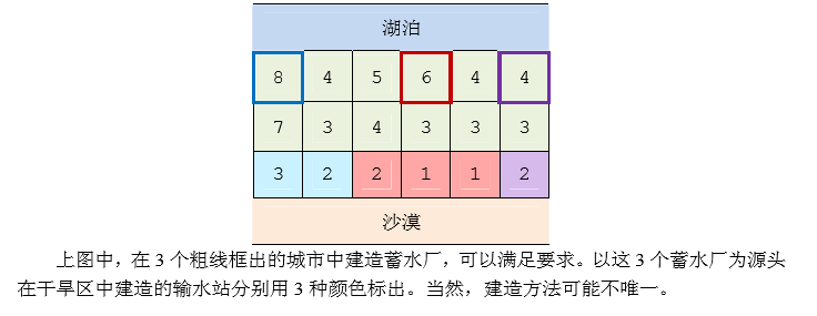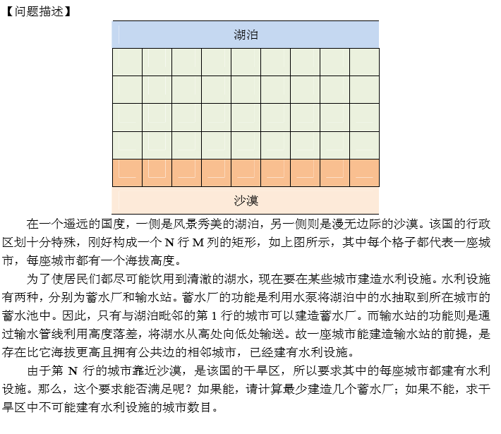 输出有两行。如果能满足要求,输出的第一行是整数 1,第二行是一个整数,代表少 建造几个蓄水厂;如果不能满足要求,输出的第一行是整数 0,第二行是一个整数,代表有 几座干旱区中的城市不可能建有水利设施。