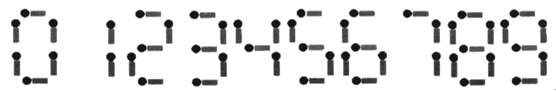 给你n根火柴棍,你可以拼出多少个形如“A+B=C”的等式?等式中的A、B、C是用火柴棍拼出的整数(若该数非零,则最高位不能是0)。用火柴棍拼数字0-9的拼法如图所示:
