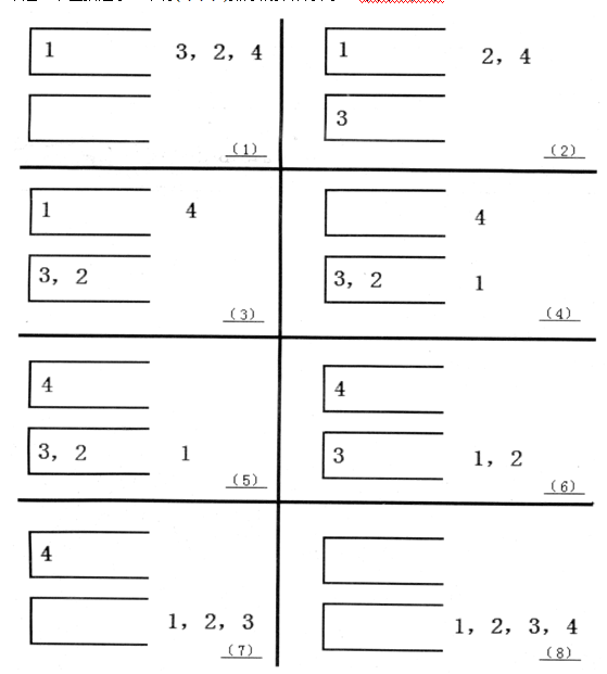 如果一个1~n的排列P可以通过一系列操作使得输出序列为1,2,…,(n-1),n,Tom就称P是一个“可双栈排序排列”。例如(1,3,2,4)就是一个“可双栈排序序列”,而(2,3,4,1)不是。下图描述了一个将(1,3,2,4)排序的操作序列:<a,c,c,b,a,d,d,b>